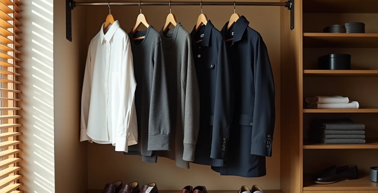 La solución no es simplemente «comprar menos y mejor», sino entender los principios que hacen que una prenda sea una verdadera inversión. No se trata de logos o marcas, sino de la ciencia de los materiales, la inteligencia en la construcción y una estrategia de cuidado que alarga la vida de tu ropa. Este enfoque transforma tu armario de un simple almacén de ropa a un sistema de vestimenta eficiente y atemporal, diseñado para simplificar tu vida y proyectar seguridad sin tener que pensar demasiado cada mañana.