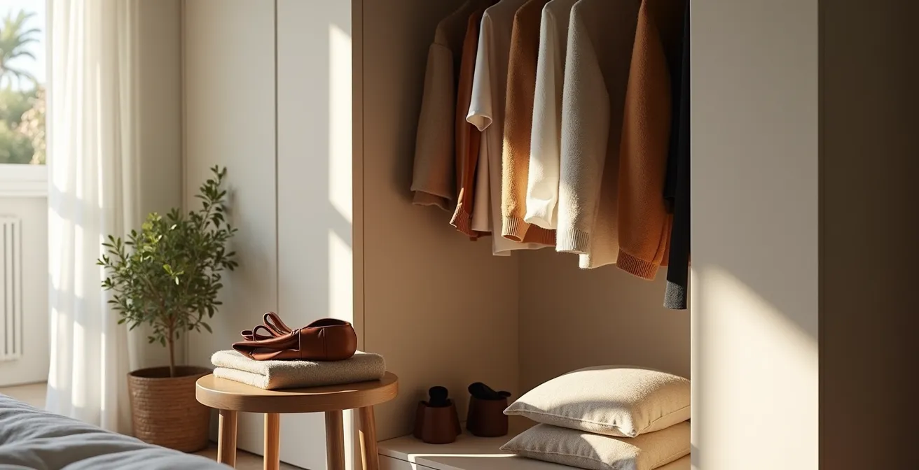 La escena es familiar para cualquiera que viva en un piso en Madrid o Barcelona: suena el despertador, abres un armario a rebosar y, sin embargo, la sensación es siempre la misma: «no tengo qué ponerme». Esta paradoja no solo te roba minutos preciosos de sueño, sino que instala una dosis de estrés antes incluso de que empiece el día. La solución habitual parece ser comprar más, aprovechar las rebajas o seguir la última tendencia, lo que solo agrava el problema y reduce aún más tu valioso espacio vital.