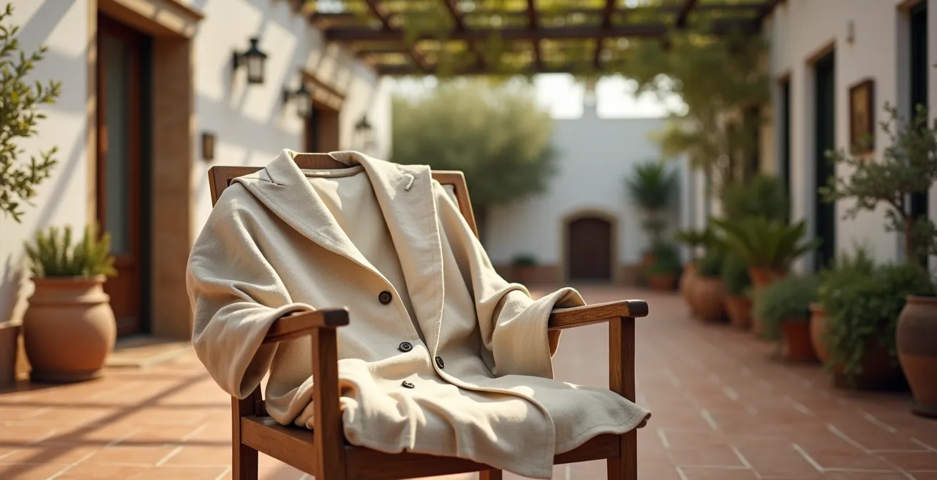 Pero, ¿y si te dijéramos que la clave no está en evitar la arruga, sino en elegir un tejido que la haga «noble», en combinarlo para darle un contexto formal y en saber cuidarlo para que te acompañe con dignidad durante más de diez horas? La solución no es renunciar al frescor del lino, sino aplicar una estrategia textil inteligente. Se trata de entender el porqué de cada elección para construir un look a prueba de altas temperaturas y de miradas críticas.