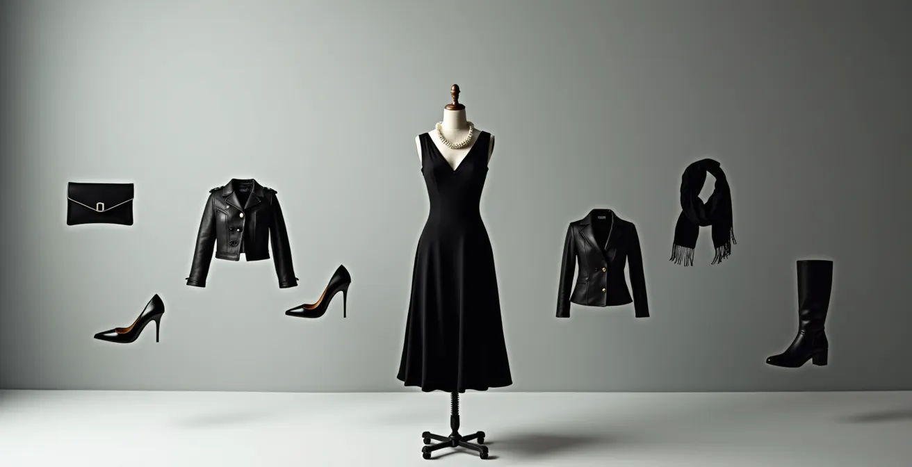 Imagina la escena: un evento importante de última hora y el pánico se apodera de ti frente a un armario lleno. La frase «no tengo nada que ponerme» resuena una vez más. Todas hemos pasado por ahí. La solución que siempre nos han dado es tener un «Little Black Dress» (LBD) o vestido corto negro como salvavidas. El consejo habitual se queda en la superficie: «cámbiate los zapatos» o «ponte una chaqueta bonita». Pero esto no resuelve el problema de fondo, solo ofrece parches temporales.