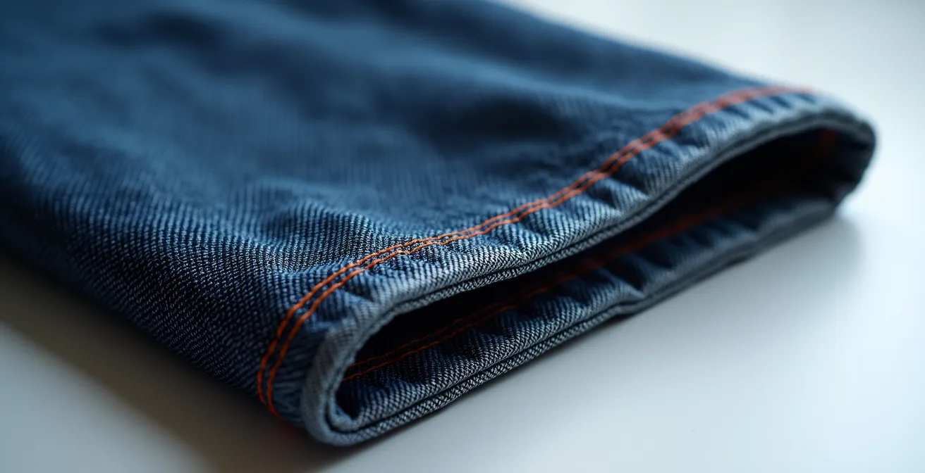Una de las mayores frustraciones para quien invierte en un vaquero premium es ver cómo se rompe prematuramente, especialmente en la entrepierna. Este desgarro, conocido como «crotch blowout», casi nunca se debe a una mala calidad del tejido, sino a un error fundamental en la elección de la talla. La creencia popular de comprar los vaqueros lo más ajustados posible para que «cedan» es la principal culpable. Un ajuste excesivamente ceñido en los muslos y la pelvis crea una tensión constante en las fibras y las costuras con cada paso y cada vez que te sientas.